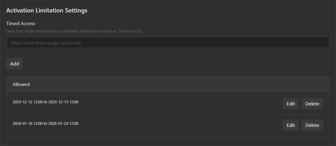 The nuclear option against pre-release leaks. You set the upcoming date/time windows down to the minute. Outside the windows the game refuses to launch, no error message that can be patched, just a clean “Game not owned” message. When the window opens, it works instantly. Even if the build is uploaded to torrent sites outside the window, pirates stare at a dead executable until you say otherwise.